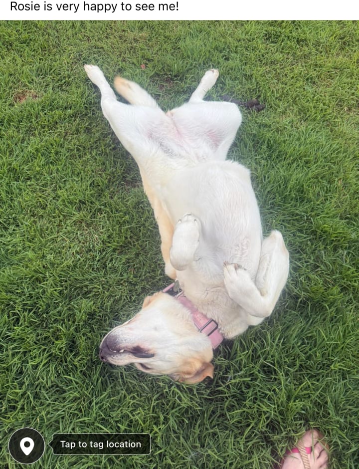 11:11 am. Sitting in the garden with my dog and bird. Breathing sunshine. Contentment. Although bit bloody sore. Lol. Too much dancing!