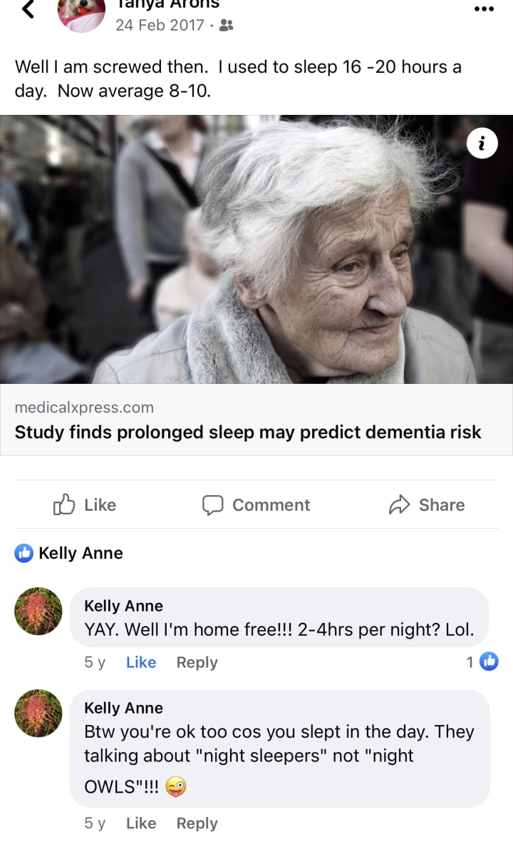 Me: Sorry to hear about the tumour Sylvia. Headaches are awful! I just woke up at 4.30 pm. So glad I slept all day as I was so exhausted but couldn't sleep properly! So a good catch up for my brain to rest.