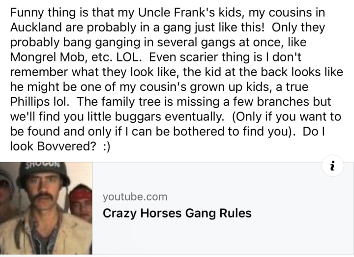 He was complaining to me about bikies and I was explaining bits and pieces of the sub-culture to him, what little I know. He got a little freaked out. I told him there is nothing to freak out about. People are people everywhere, no matter what class or culture they belong to.