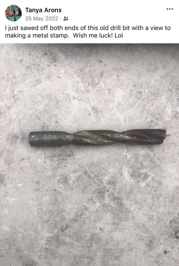Today I made my first metal stamp, inspired by a video by Rio Grande with a tutorial by Matthieu Cheminée. I had thought it was beyond my skill set but I found it quite easy and enjoyable. Tomorrow I will attempt to temper the steel.