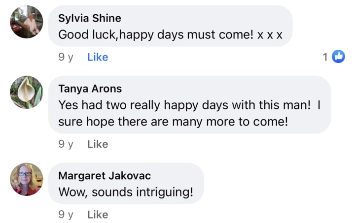 It is sad that we can’t seem to get back together but our spirits are entwined in some weird cosmic dance and true to his word, he is never far away from me.