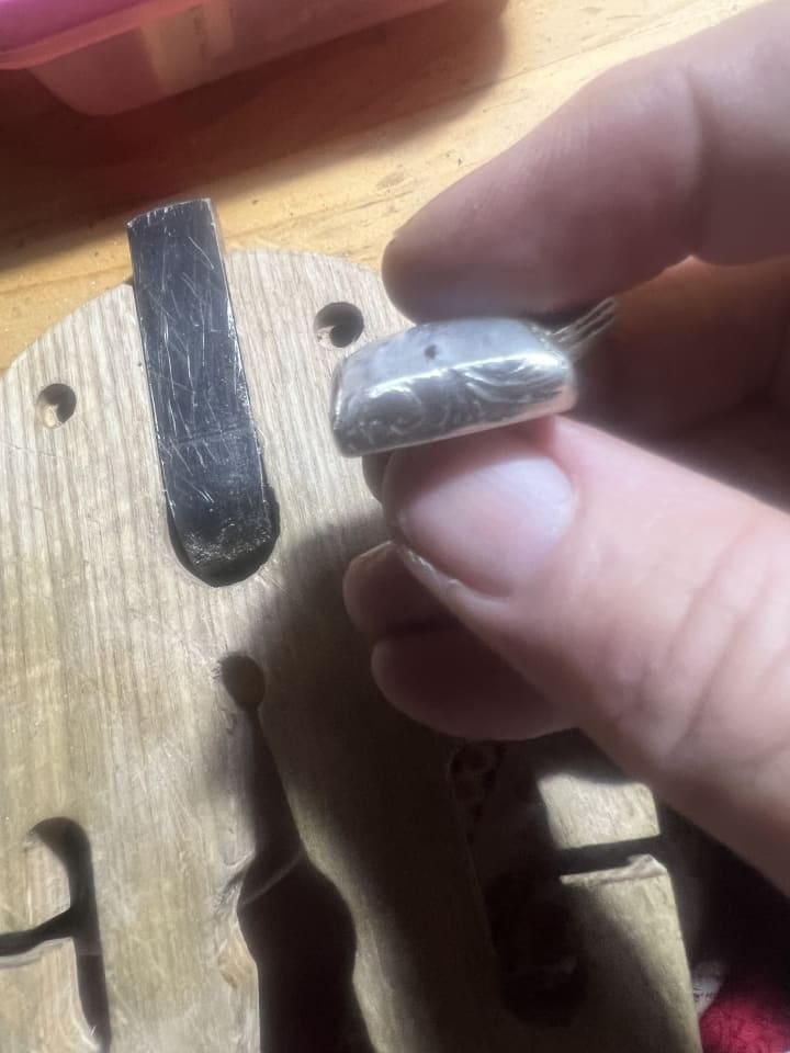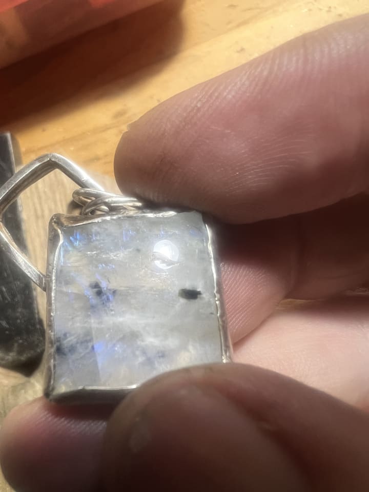 I chipped the front of the stone (even with tape on top of it. Arghhhh) but it still looks pretty. #titaniasrealm #bezelstonesetting #arggghhhh #magickhappens #iwillneedToImproveOnThis #donefortheday