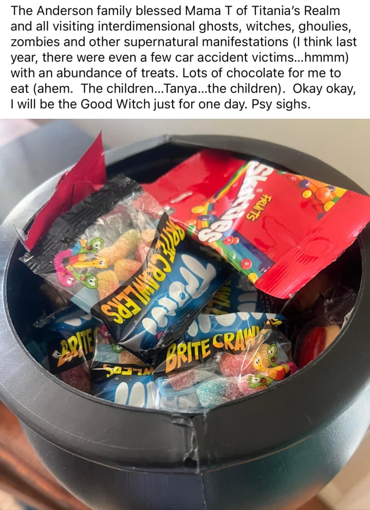 We returned home and Margot and her girls came past with a gift of some wonderful skull lights and lollies for Halloween also. Spoilt Mama T!!! So tomorrow I will be busy decorating the house entrance as I do every year.