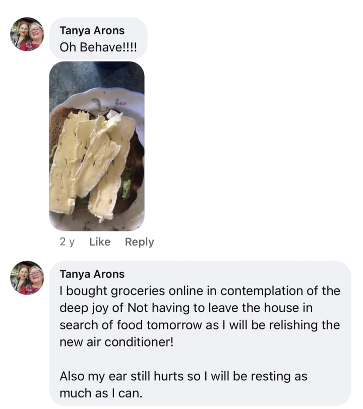 Now defrosting chicken niblets for dinner so I don’t run wild and give in to my fast food emergency craving. Baby inner child Tanya gets very opulent and demanding when she’s sick or feels life threatened.