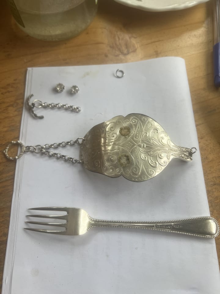 I bought a dessert fork instead of a normal size fork so I need to decide if I am happy with a smaller forked tongue or if I wish to buy a larger fork to fix her to her original design and size. Decisions!