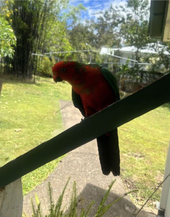 Not only that, but the King Parrot sang to me and landed right in front of me on my back steps where I am Sitting. I asked his permission for a photo! He stayed just long enough for the picture then he and his mate flew into the umbrella tree where they are both watching me with interest.