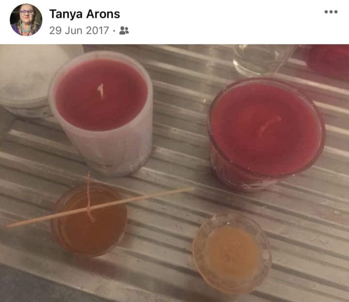 I had a lovely day yesterday. Productive time in the garden installing the new garden arch, then made recycled candles from my collection of old candles.