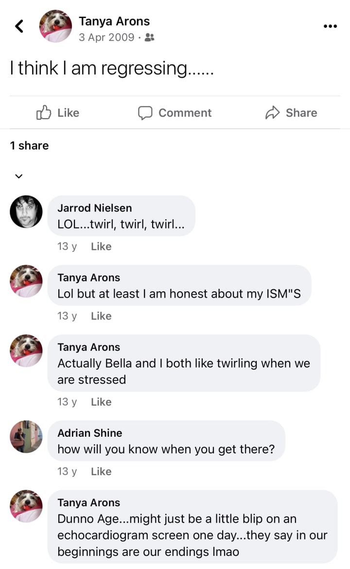 I write about my life experiences. I write about complex ptsd, the agonies, the angst and my post traumatic growth. About Beauty, Truth and Honour and little vignettes of comfort from the spirits that love me: living and dead. I also Dance!