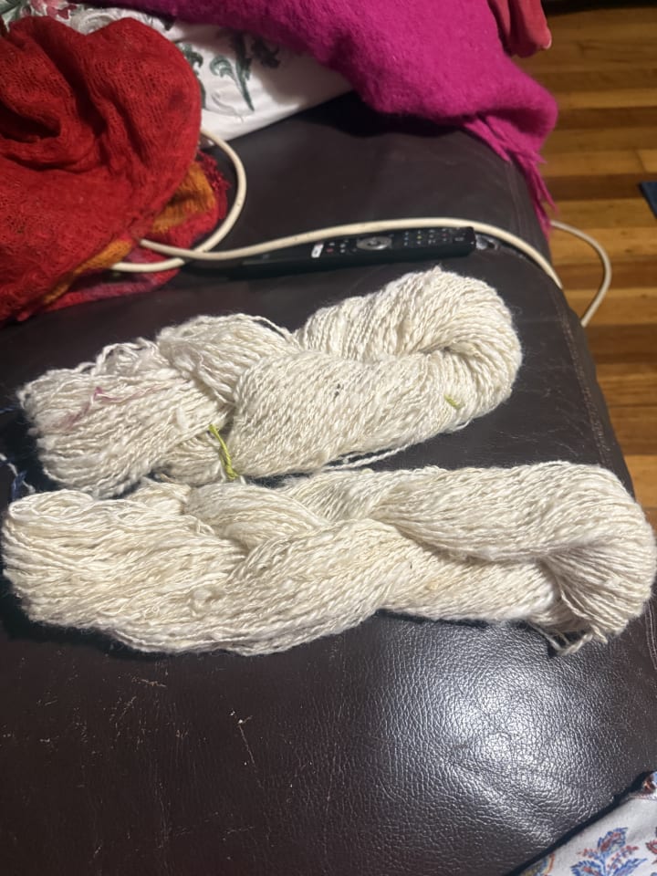 9:20 pm Second hank of Alpaca fleece…spun and plied. Still a fair bit to spin..about half a pillow case full but getting there!
