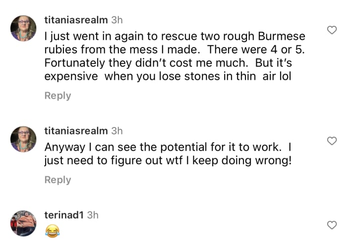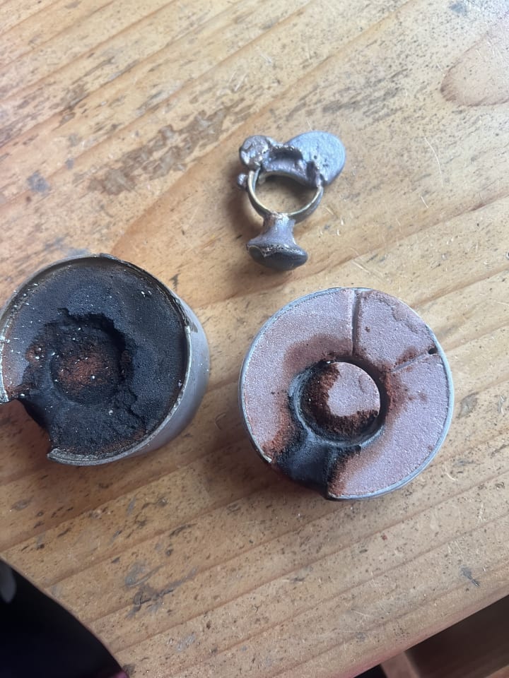 Today I failed at cast in stones with a wide ring band. I got so annoyed and also enthralled and a tad curious that I remelted the leftover silver and chucked it on the negative spaces where the stones were…just to experiment if it could have worked. (No idea what went wrong!) the silver was hot enough. I held my mouth the right way. Lol.