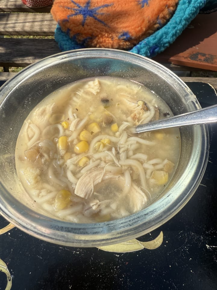 Very weak today. I have had a nice large bowl of pumpkin soup with homemade toast. I walked the dog and bird. Beau insisted on a longer walk through the forest from Carnelian street.