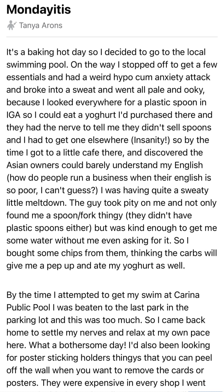 What if? I stopped writing weird thoughts on Facebook and got a life? What if I were another kind of Tanya? Imagination. Wreaks havoc with my chosen plan.