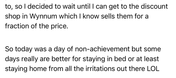 But I had a lovely time with Jarrod yesterday. Today I am going to the doctor to get my medical certificate signed off for my driving license for another year.
