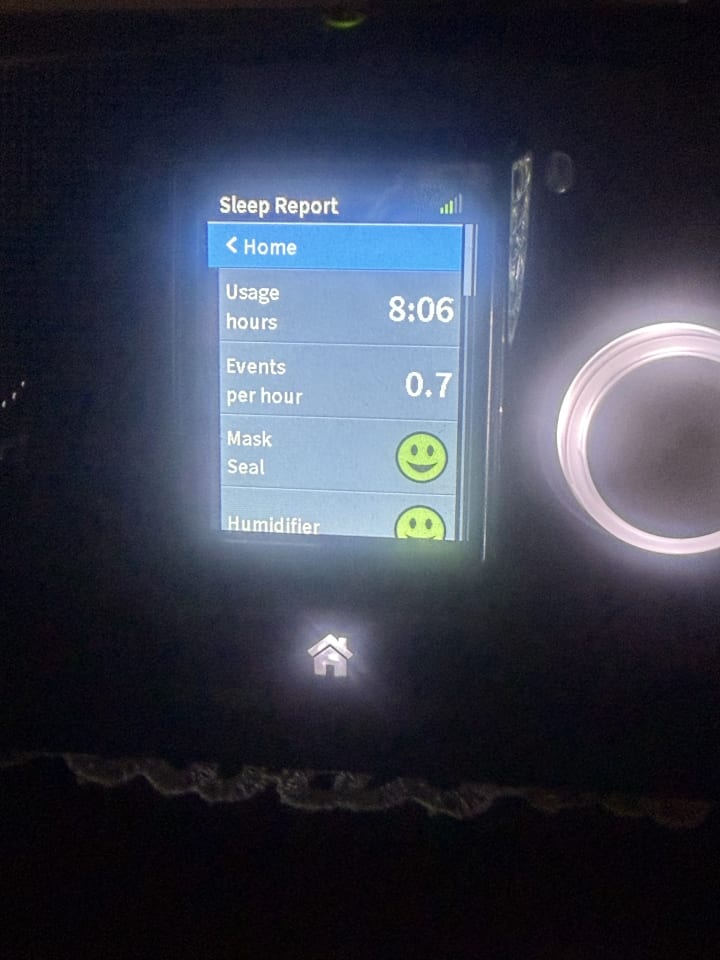 6:53 am. Bad night…but I awaken to a beautiful morning. My breathing result is better but I had lots of struggles with my bladder and insomnia. So not sure how accurate the “0.7 events” is.