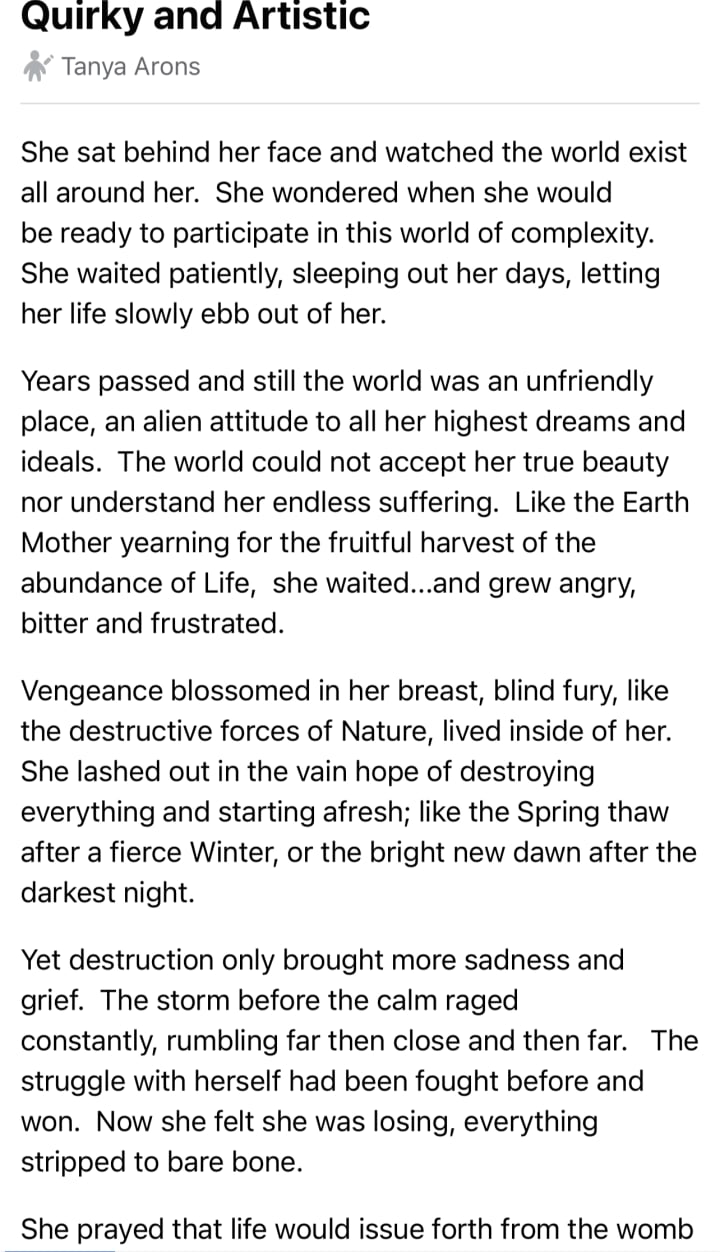 I write about my life experiences. I write about complex ptsd, the agonies, the angst and my post traumatic growth. About Beauty, Truth and Honour and little vignettes of comfort from the spirits that love me: living and dead. I also Dance!