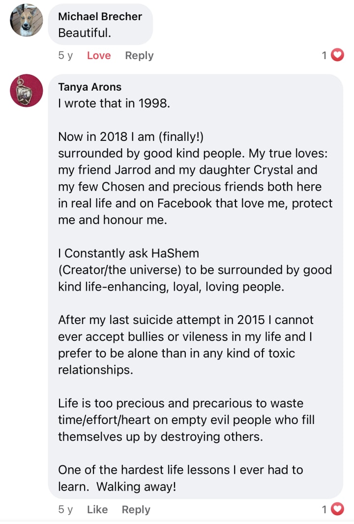 It's almost unbelievable and so incredibly painful to this day, how much Hate I have survived and fought back. Just getting up each day and continuing to put my faith in humanity, G-d, Nature and allowing myself to live and Love in spite of my life experiences.