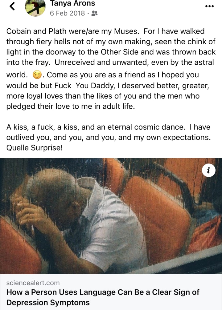 I am alone on this planet. It’s fucking terrifying. Witnessing extraordinary regressive childlike behaviours. Or worse, sexually aggressive attacks (and that also coming from a woman!) No one is safe from that thing that is altering personalities and brain functioning.