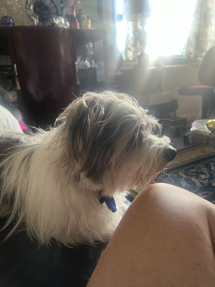However, we are resting on my couch, and I just adore how my Beau often rests with his feet or legs entwined with mine. Intimacy of inter-species, good clean unconditional love.