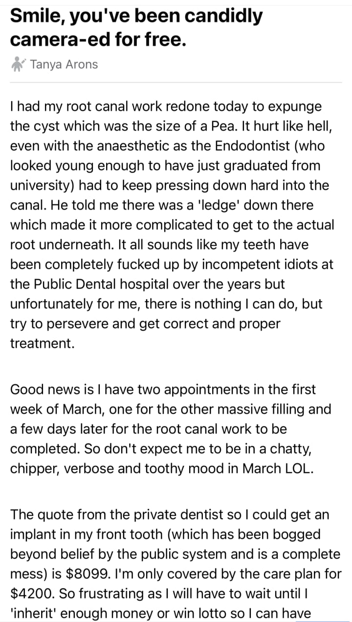 A stark reminder that my life is limited and precious. Must be gentle with my Self. I don’t want to end up in those holding pens for death called Aged Care facilities shitting in my adult diapers. Yuck!