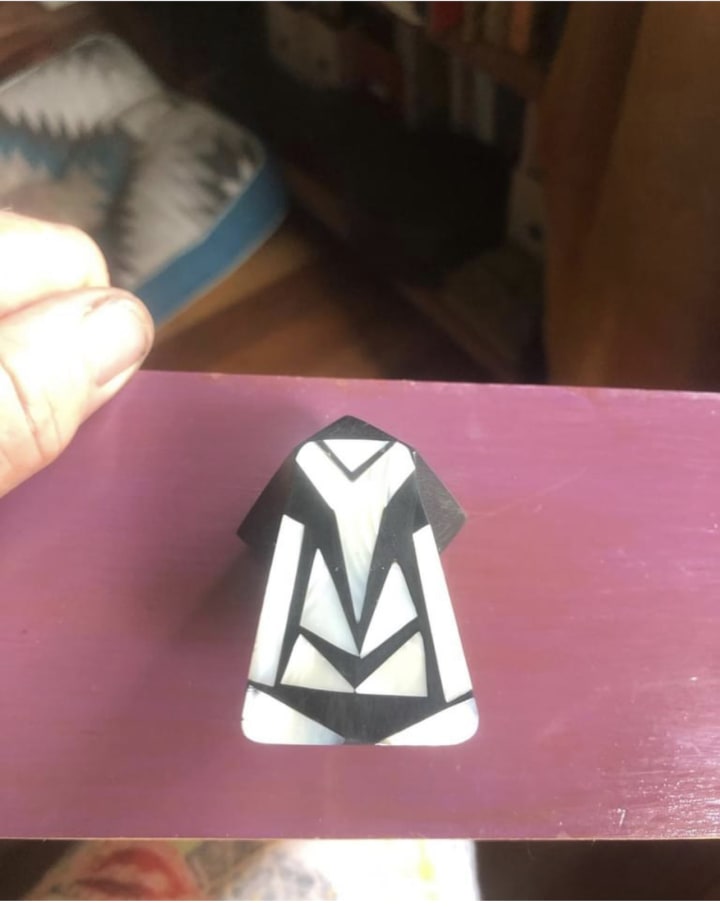 I remade this drawer handle. It used to be wired on as I lacked the skills. I had to cut off some of the mother of pearl (old earring) that was scratched and had the holes drilled into it for the wire.