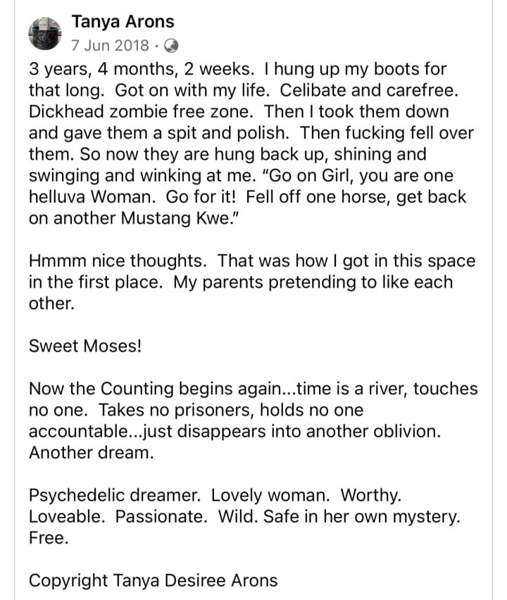 I write about my life experiences. I write about complex ptsd, the agonies, the angst and my post traumatic growth. About Beauty, Truth and Honour and little vignettes of comfort from the spirits that love me: living and dead. I also Dance!
