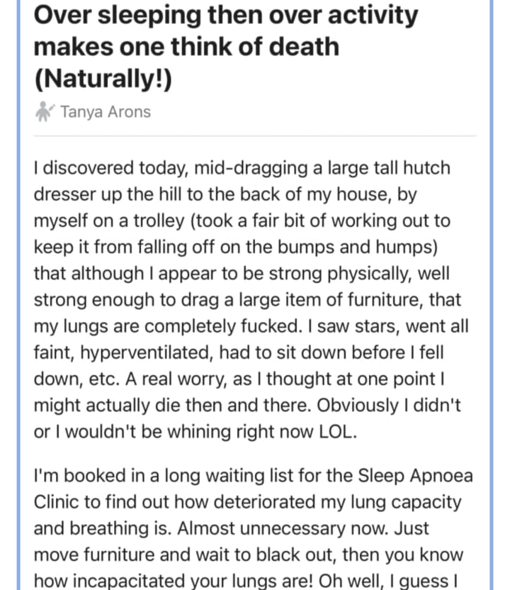 After 6 months suffering with a bad chest and over 12 months after my suicide attempt I still don't feel physically all that well.