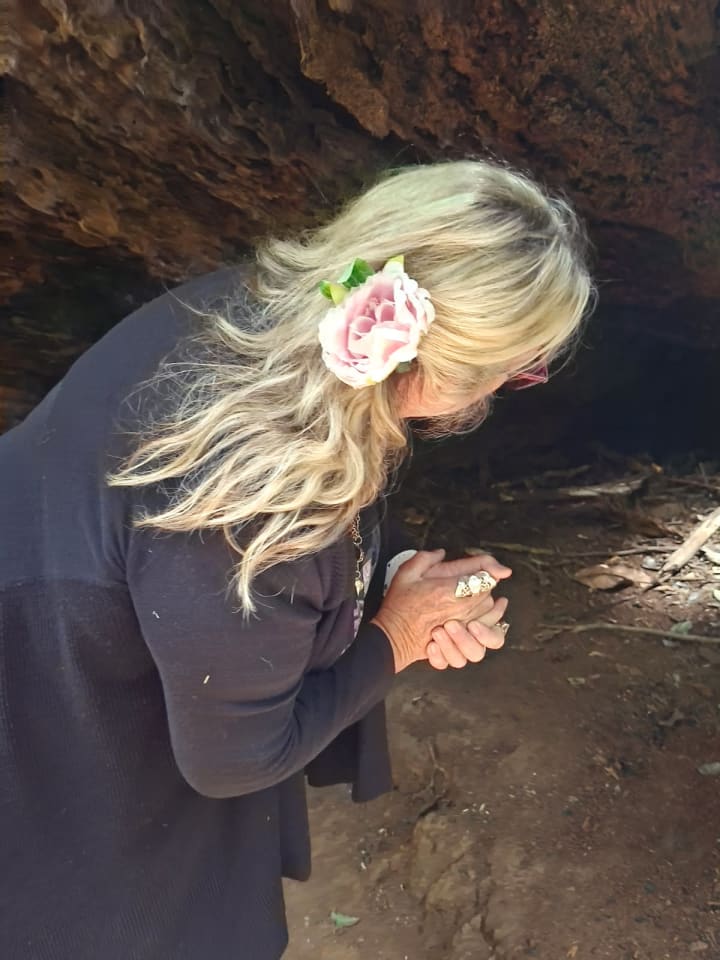 Tanya visiting the Faery Tree as Purling Brook Falls, Springbrook