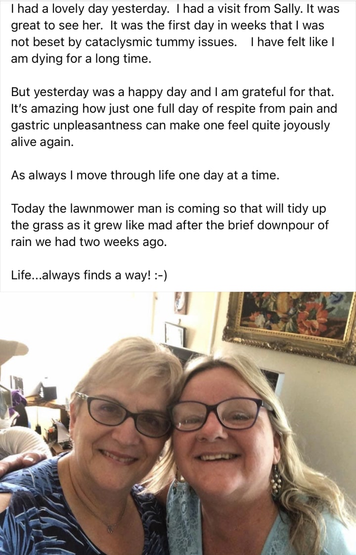 I have had another good day. Two days in a row. Woohoo! It was extremely hot today though. But it’s a typical Australian summer. A new kind of “normal” we will adjust and strive to Thrive again.