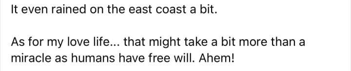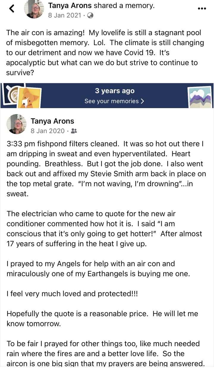 To be fair I prayed for other things too, like much needed rain where the fires are and a better love life. So the aircon is one big sign that my prayers are being answered. It even rained on the east coast a bit.