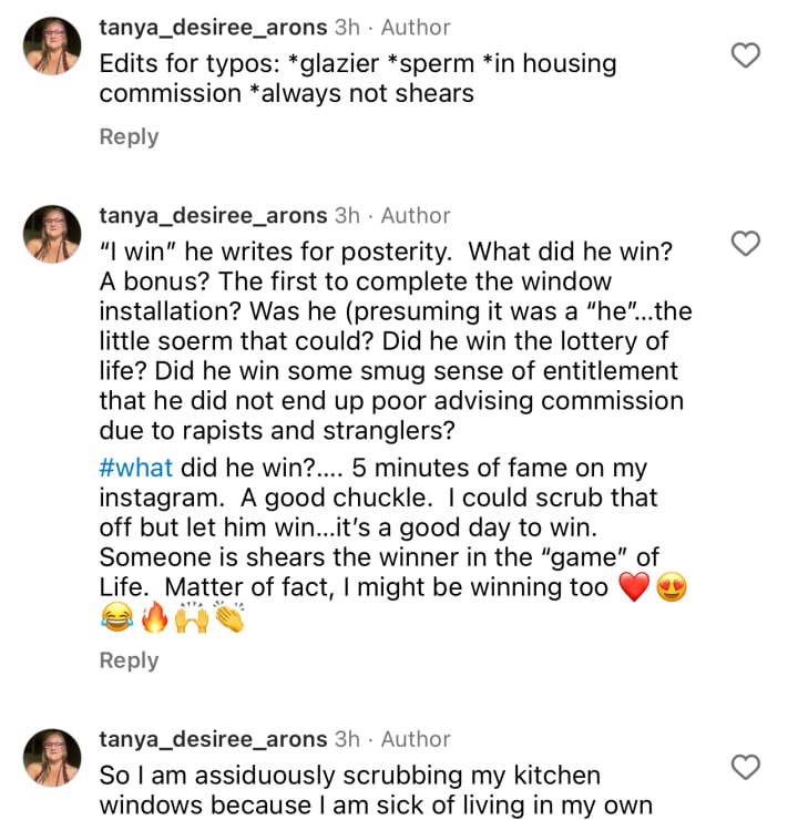 Des replied “Oh, thanks Tanya!” I replied “No, really! You don’t know how happy that makes me and how very fortunate you are”.