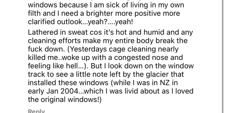 Me: Still happens…I can't sleep due to the pain from the blisters and the dry socket. Plus some guy went past my house coughing loudly which set Bobo off barking. Took me ages to settle him down.