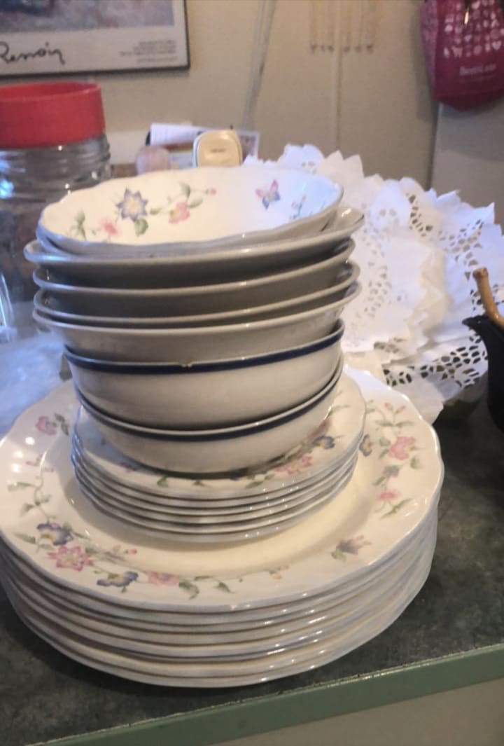 I had a funny turn after putting it in my cupboard. But waste not, want not. It’s perfectly good China and not as scratched as my stuff which has been in daily use for 30 years!