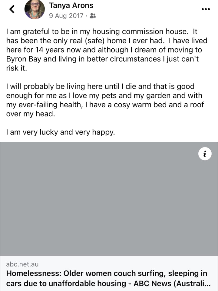 Enjoying my government housing commission home that so many scorn (fuck them!) and my mother and my own remaining trinkets!