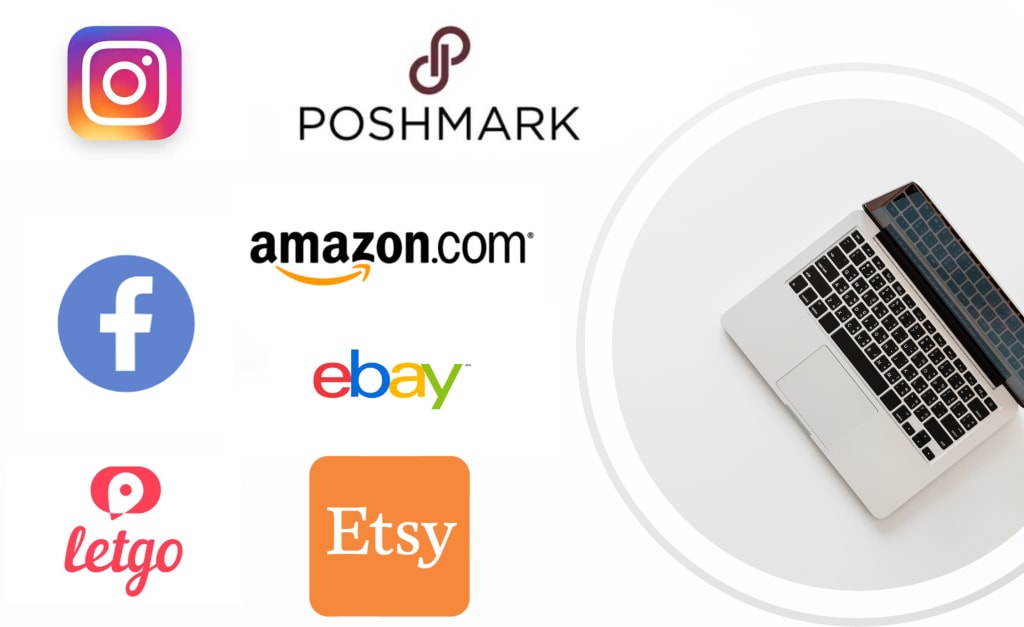 Websites and apps like Poshmark, Etsy, and Letgo are popular for people starting boutiques, and getting rid of things they no longer need. You can even sell things on Instagram and Facebook simply by posting it, or putting it in the marketplace via Facebook. Amazon, and Ebay allow you to sell things used, new, or created through their site.