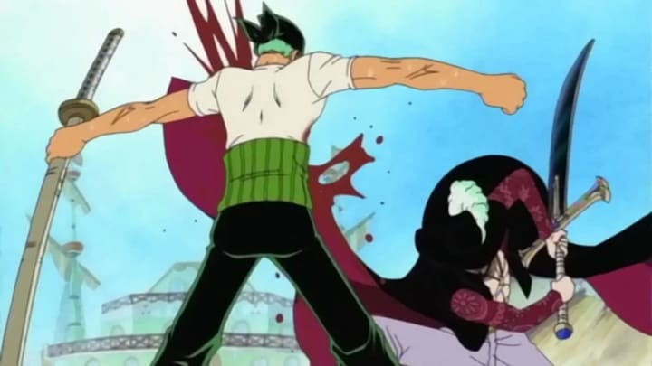 As the story progresses, Zoro faces many challenges and battles. One of his most significant battles is against Dracule Mihawk, the world's greatest swordsman. Zoro fights Mihawk to prove his worth as a swordsman and ultimately loses but gains a newfound sense of purpose and motivation to become even stronger.