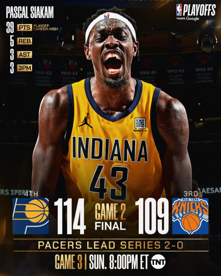 NEW YORK, NY – Madison Square Garden, a cauldron of playoff intensity, bore witness to a dominant performance by Pascal Siakam on Friday night, as the Indiana Pacers seized a crucial 114-109 victory over the New York Knicks, pushing them to a commanding 2-0 lead in the Eastern Conference Finals. Siakam, the dynamic forward, delivered a playoff career-high of 39 points, a relentless display that consistently stymied the Knicks' efforts to gain traction.
