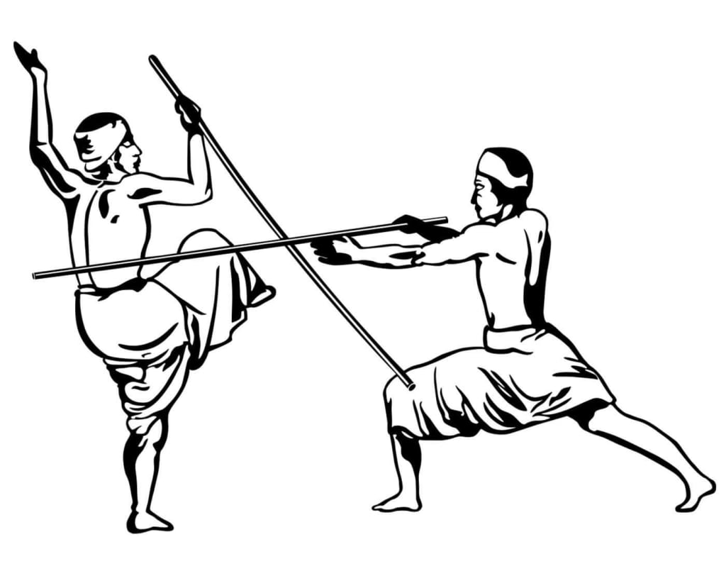 It's an ancient weapon-based martial art. The word Silambam etymologically means "staff from the hills" with the word meaning of "Silam" being "hills" and "Kambu" being "staff or sticks". The game is usually played on an even hard surface where the players use a bamboo stick with its length equivalent to their heights. Overall, there are 16 forms of footwork present in this martial art.