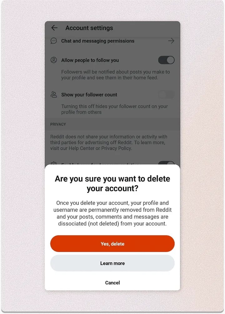 On the other hand, some customers may feel more comfortable knowing their data is temporarily stored — just in case they change their mind. A good solution is to offer: “We can save your profile and data for another 3 months to make it easier for you to come back. Or, if you prefer, we’ll delete everything right now.”