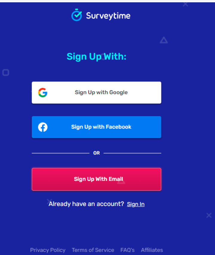 signing up @ surveytime