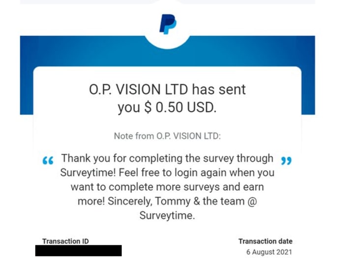 Surveytime Payment Proof(s)