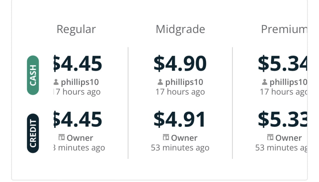 The picture posted is of gas prices in my hometown at the cheapest place to get gas — Pilot.