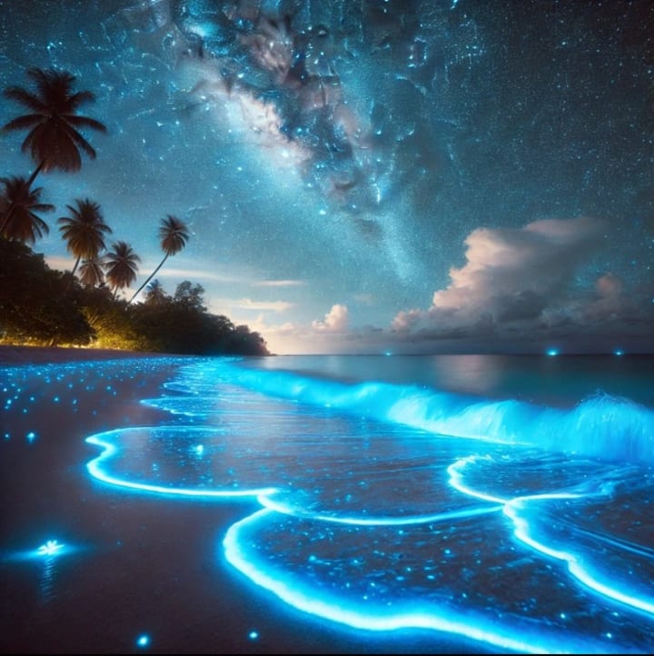 The Aglow Shores of Aeora represent nature’s harmony, area bioluminescent amnion ablaze up the sea.