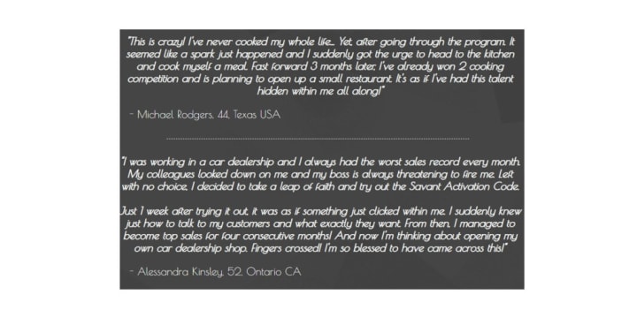 Users have responded positively after accessing The Savant Activation Code program. The customer reviews show that users have gone through great fame, wealth abundance, improved love life, and better working conditions.