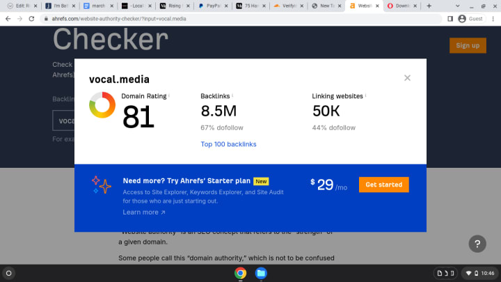 Vocal has a domain authority rating 81/100, which is pretty high. This means that search engines trust Vocal, and when you write value-packed content or searchable articles, you’ll rank much faster on Google and other search engines.