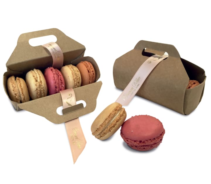 Designs of the packaging of a certain product can be customized as a marker of the brand. Creative shapes always attract customers and urge them to buy the item. Packages of macaron are mostly made up of pliable cardboard sheets. They can be easily altered in multiple shapes and sizes. Using this liberty, one can give these packages a unique appearance that may fascinate customers. Cuboid collapsible boxes are frequently used in the market. You can give them a hexagonal shape for an innovative change. Moreover, they can be given many die-cut designs that do not only enhance their captivity but also used for elegant showcasing of the items.