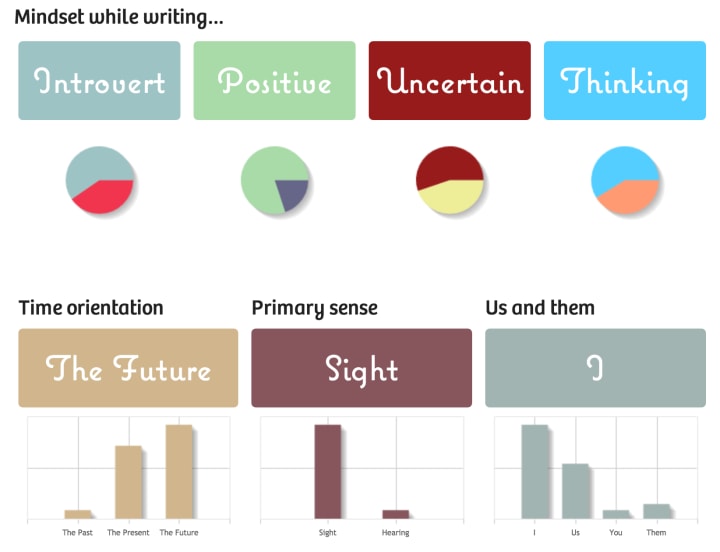 Besides, they will also provide a little assessment about your mindset when writing, the time orientation, and the primary sense.