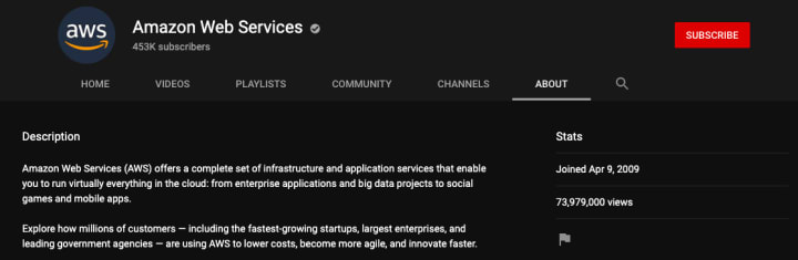 The AWS YouTube Channel