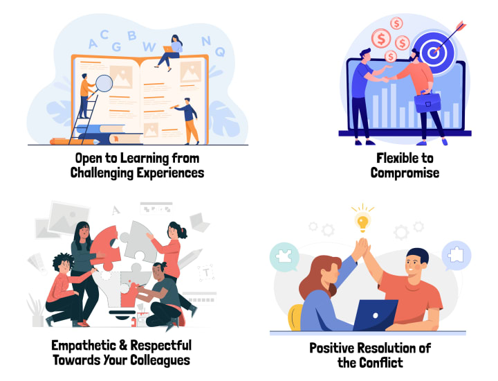 A crucial element to this question is that the interviewer is looking for a positive resolution of the conflict that benefits the company and not just an individual. They are trying to see if you are flexible to compromise and open to learning from challenging experiences.