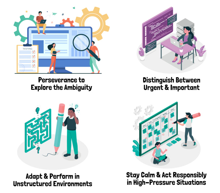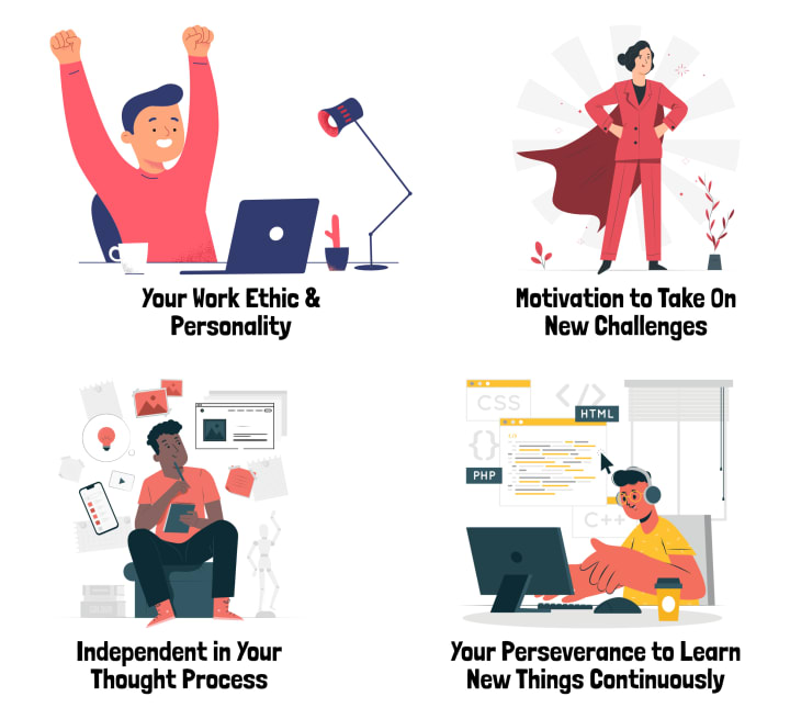 - Ability to self-identify the gaps in your skills, and