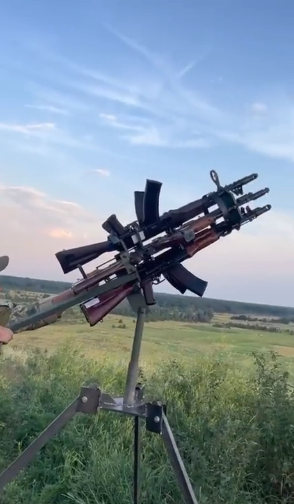 It is highly possible that the contraption, consisting of six AK-74 assault rifles, has been repurposed by Ukrainian forces for counter-drone operations.